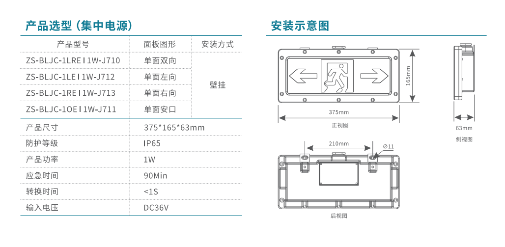 軌道交通-單面左向應(yīng)急標(biāo)志燈 | ZS-BLJC-1LEⅡ1W-J865 | 壁掛