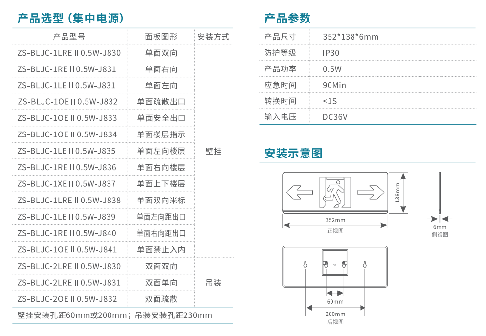 單面樓層消防應急標志燈 | ZS-BLJC-1OE II 0.5W-J834 | 壁掛