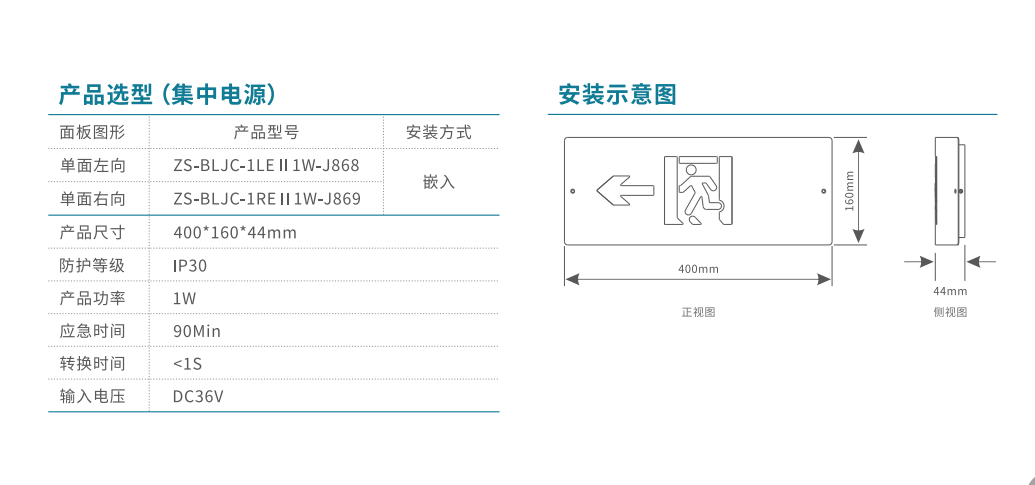 單面左向樓層消防應(yīng)急標(biāo)志燈 | ZS-BLJC-1LE II 0.5W-J835 | 壁掛
